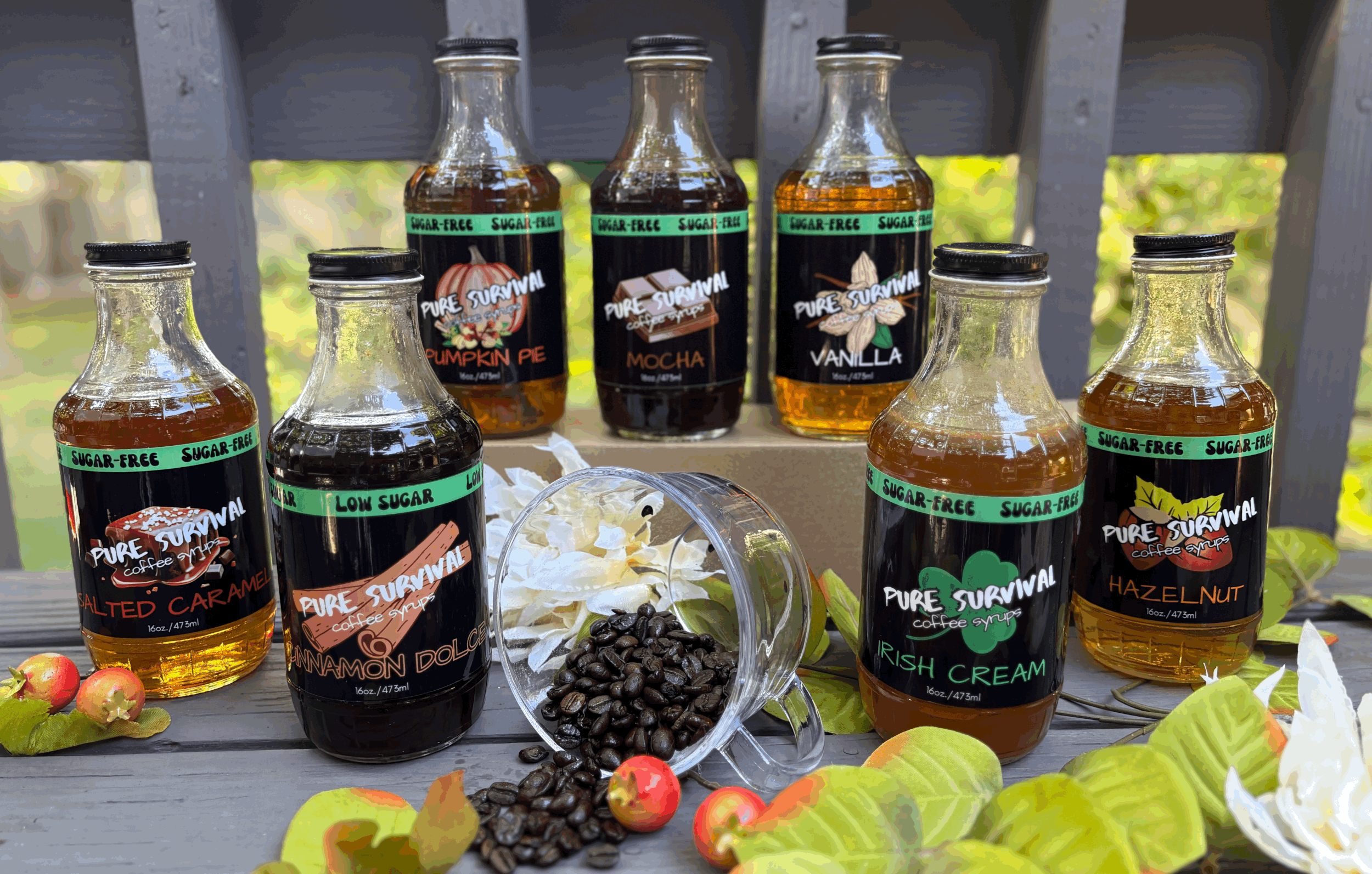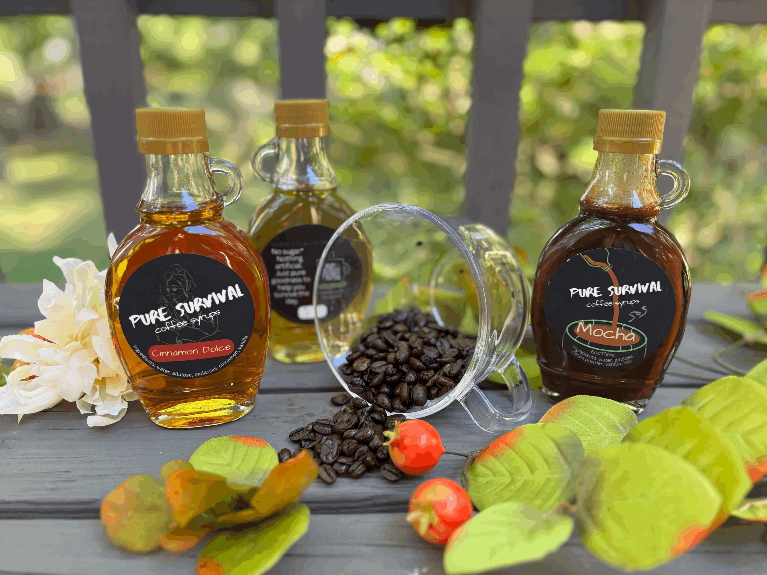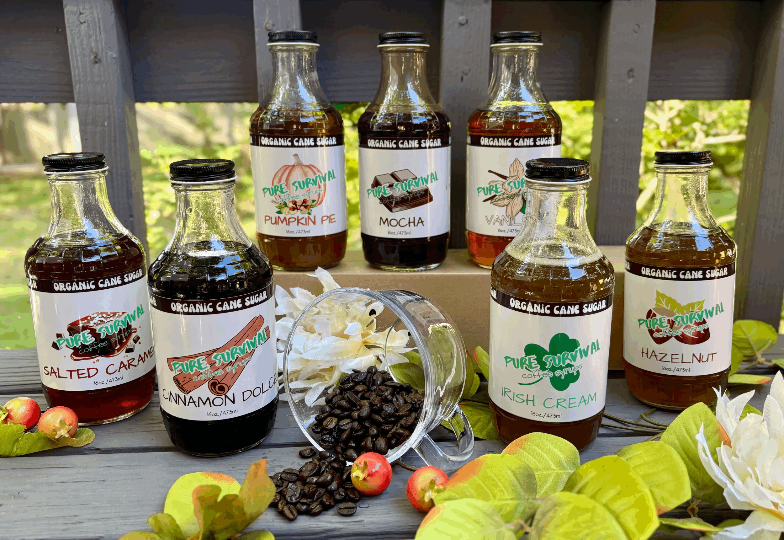 Every drop of Pure Survival Syrups transforms your ordinary cup into an extraordinary experience. Crafted with the finest natural ingredients, our syrups blend seamlessly into your coffee, tea, or favorite beverage, turning each sip into a moment of joy. Elevate your routine and savor the perfect balance of taste and simplicity—because your daily grind should do more than just help you survive. It’s time to thrive.